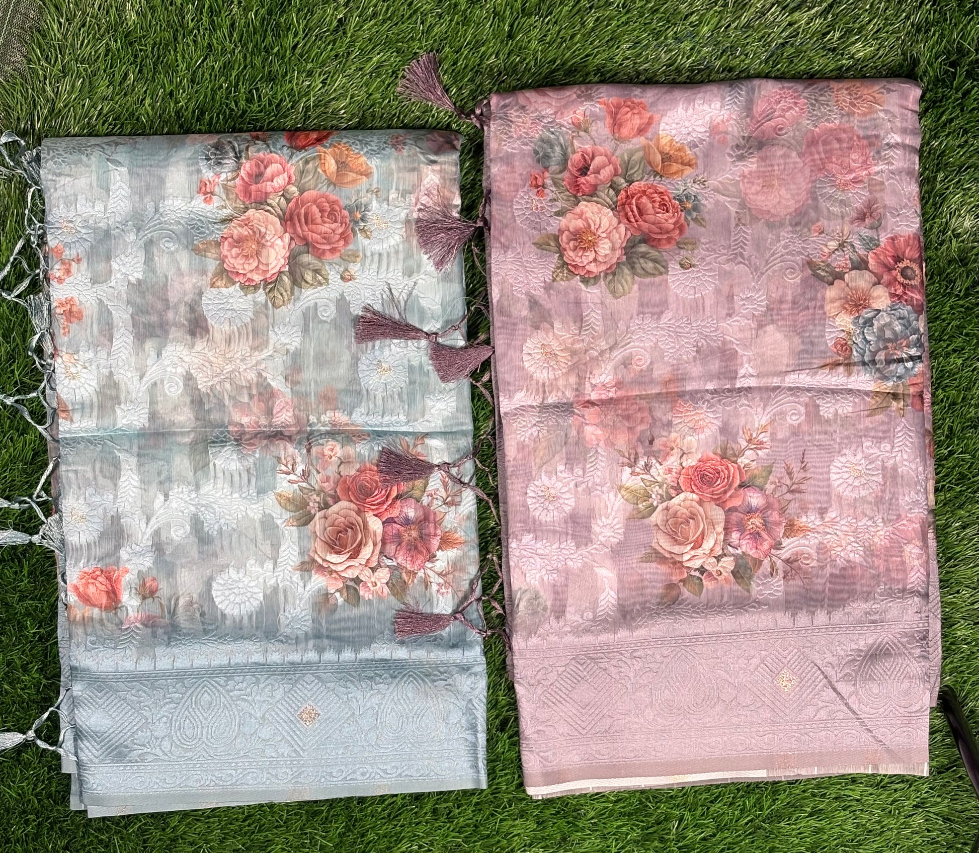 Digital floral print Tissue linen saree